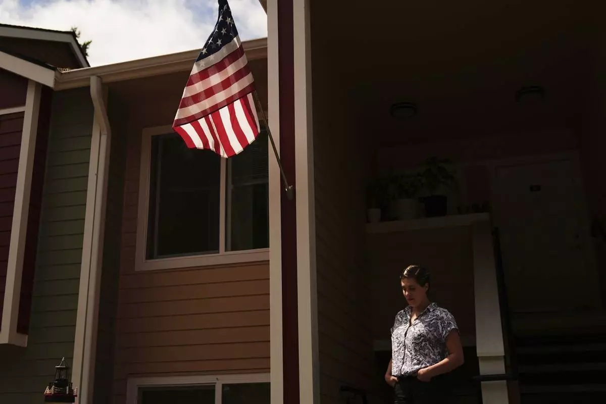 Havalah Hopkins, a single mother who lives in government-subsidized housing with her teenage son, poses for a portrait outside her apartment Thursday, July 10, 2025, in Woodinville, Wash. (AP Photo/Lindsey Wasson)