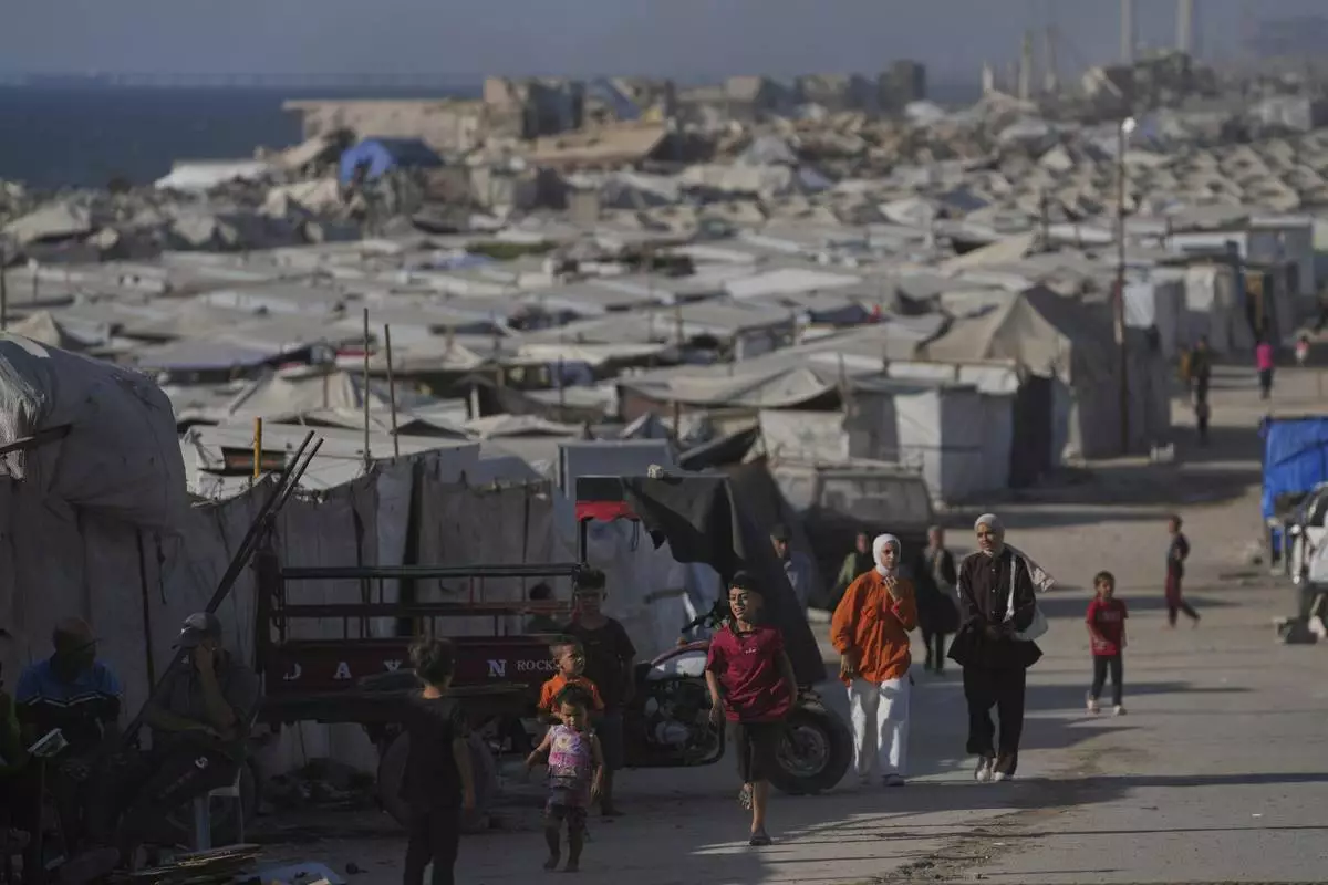 A camp of tents housing displaced Palestinians extends across Gaza City, Thursday, July 17, 2025. (AP Photo/Jehad Alshrafi)