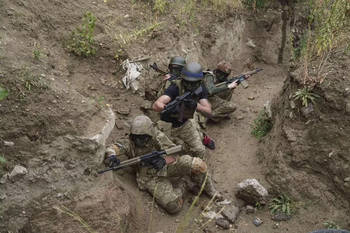 Ukrainian 3rd Assault Brigade recruits train at the polygon in Kyiv region, Ukraine, on Wednesday, July 16, 2025. (AP Photo/Evgeniy Maloletka)