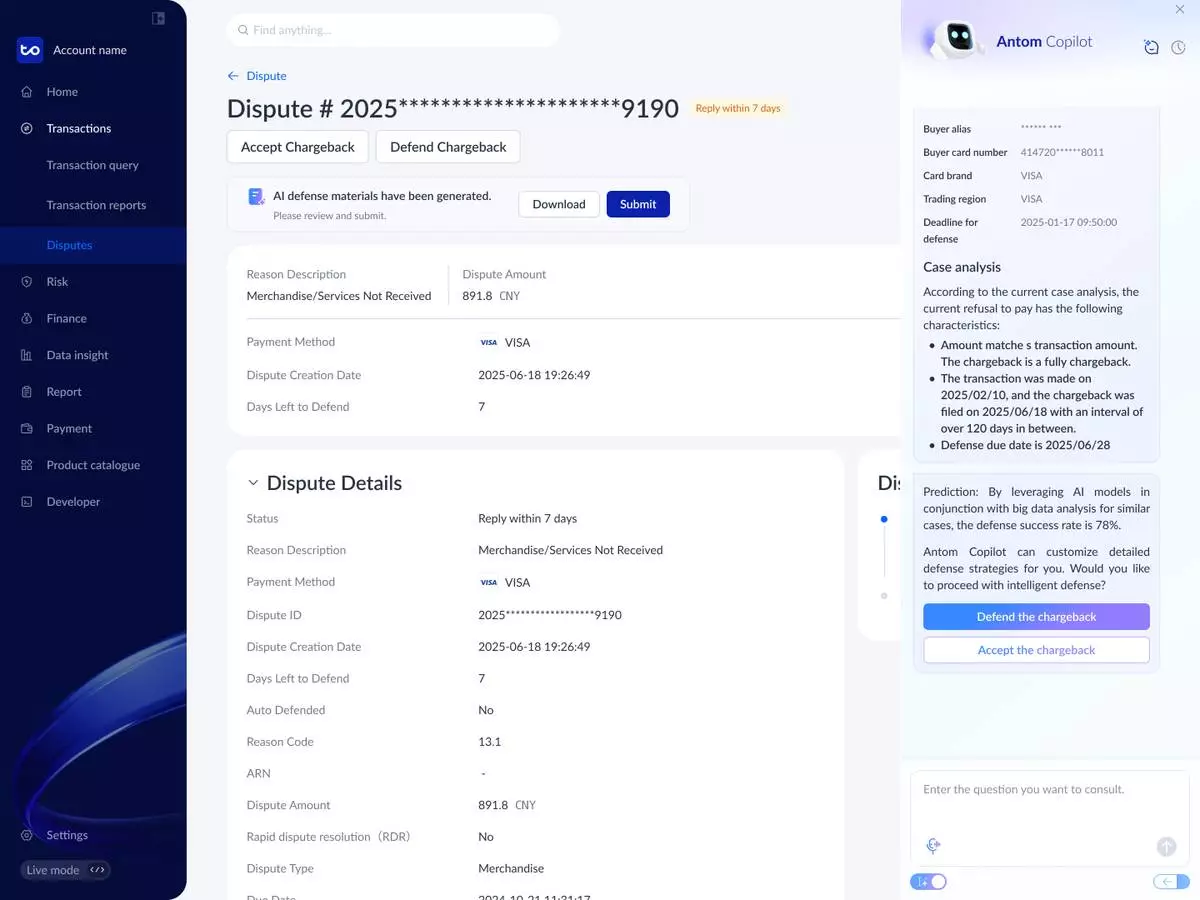 Antom Copilot 2.0 equips merchants with AI-powered chargeback management and win-rate predictions through an integrated dashboard interface