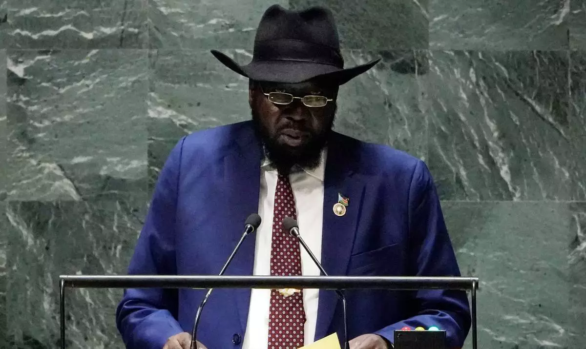 FILE - South Sudan President Salva Kiir addresses the 78th session of the United Nations General Assembly, Sept. 21, 2023. (AP Photo/Richard Drew, file)