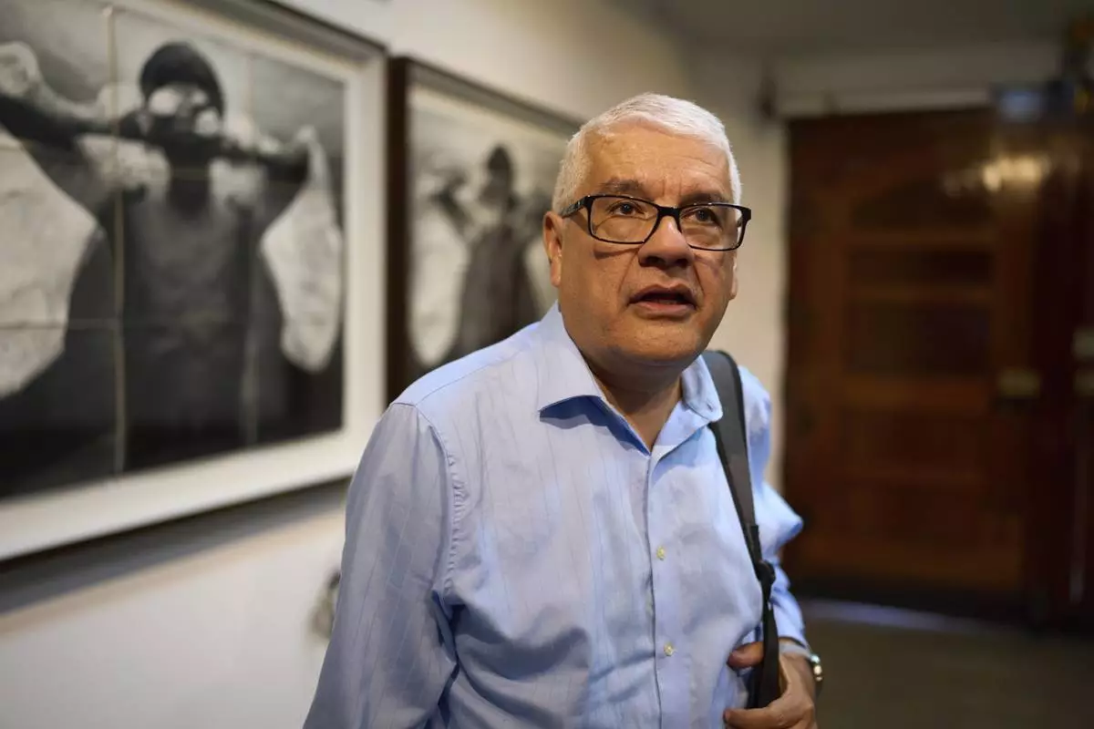 Abraham Abrego, with the human rights organization Cristosal, leaves after giving a press conference in Guatemala City, Thursday, July 17, 2025, to announce that Cristosal is suspending their activities in El Salvador. (AP Photo/Moises Castillo)