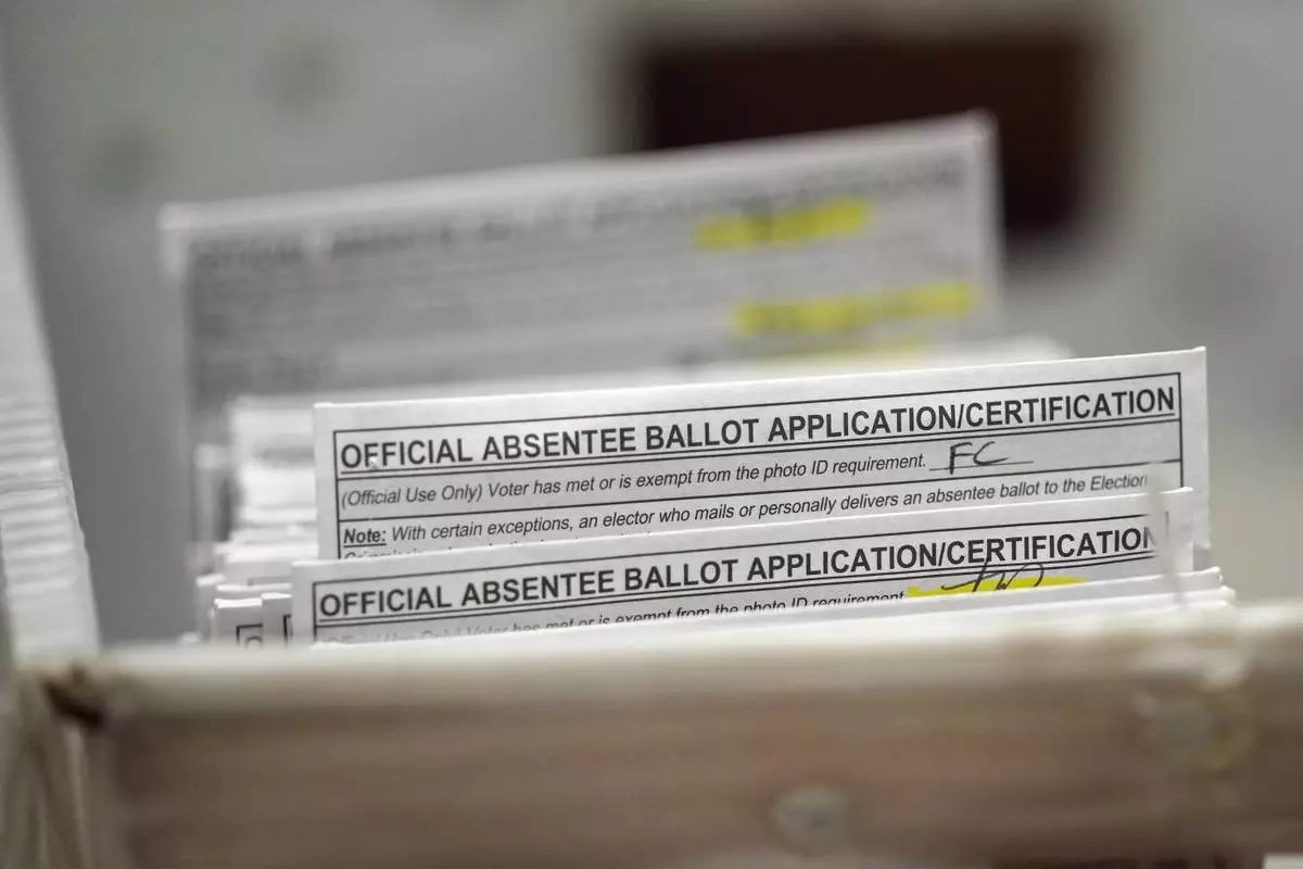 FILE - Absentee ballots during a count at the Wisconsin Center, Nov. 8, 2022, in Milwaukee. (AP Photo/Morry Gash, File)