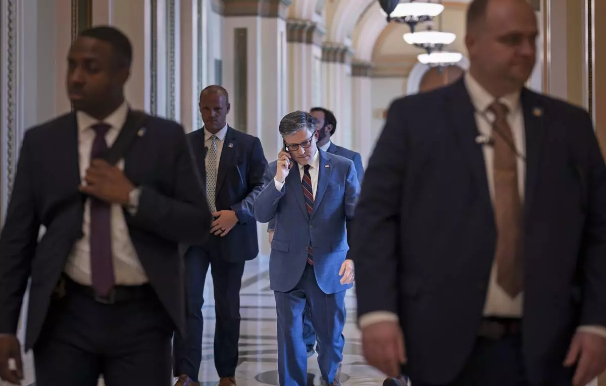 Speaker of the House Mike Johnson, R-La., leaves the chamber at the Capitol in Washington, Thursday, July 17, 2025. (AP Photo/J. Scott Applewhite)