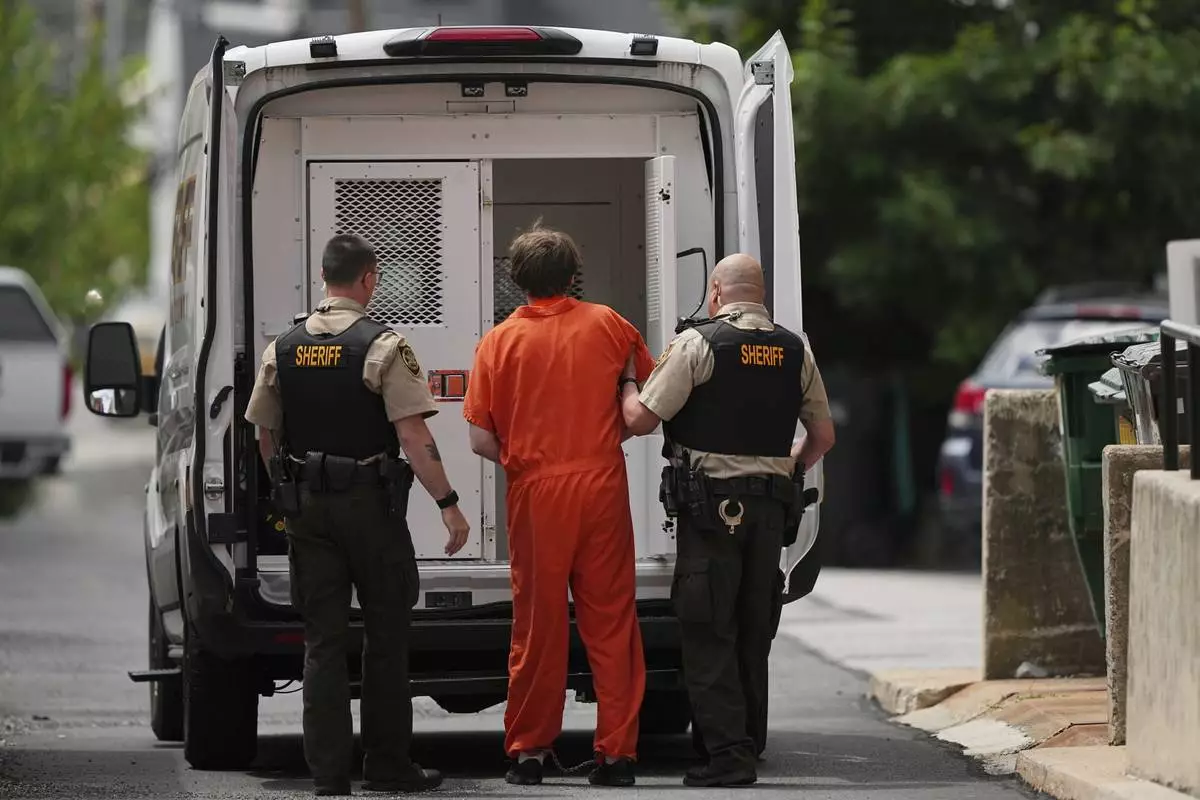 Sexual assault suspect Ian Cleary departs from the Adams County Court House in Gettysburg, Pa., Thursday, July 17, 2025. (AP Photo/Matt Rourke)