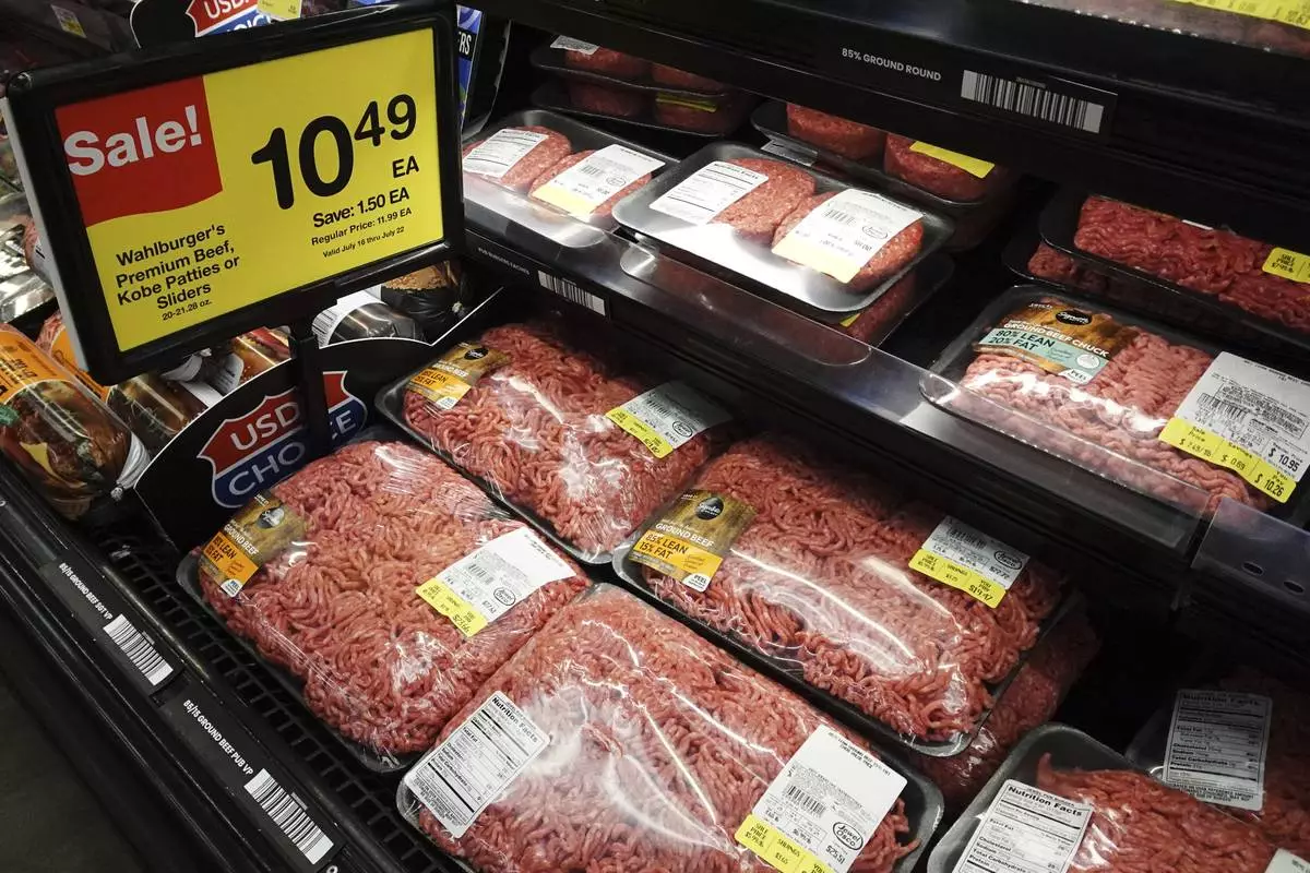 A price for beef is displayed at a grocery store in Mount Prospect, Ill., Thursday, July 17, 2025. (AP Photo/Nam Y. Huh)