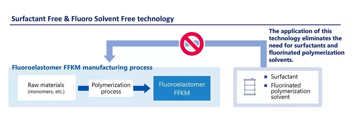 Previously, surfactants and fluorinated polymerization solvents were considered essential for manufacturing high performance fluoroelastomers, FFKM, due to their roles in enhancing the reactivity of fluorinated monomers and manufacturing efficiency. In recent years, however, customers’ demand for products that do not use these substances during the manufacturing process have grown rapidly, particularly in the semiconductor industry. While various approaches without using surfactants or fluorinated polymerization solvents have been explored, achieving the high-performance requirements of FFKM was a significant challenge.