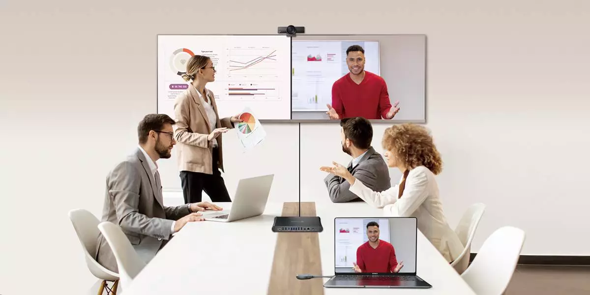 Thanks to dual HDMI outputs, the system supports connection to two large displays, offering crisp 4K visuals and flexible screen layouts. The newly added quad-view mode allows users to show up to four different sources simultaneously on one screen, making side-by-side proposal comparisons or multi-participant presentations effortless.