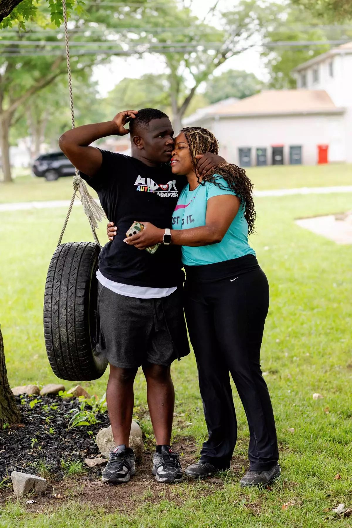 Adrienne Hazel, left, poses for a photo with her son Ricky on Thursday, July 17, 2025, in Southfield, Mich. (AP Photo/Sylvia Jarrus)