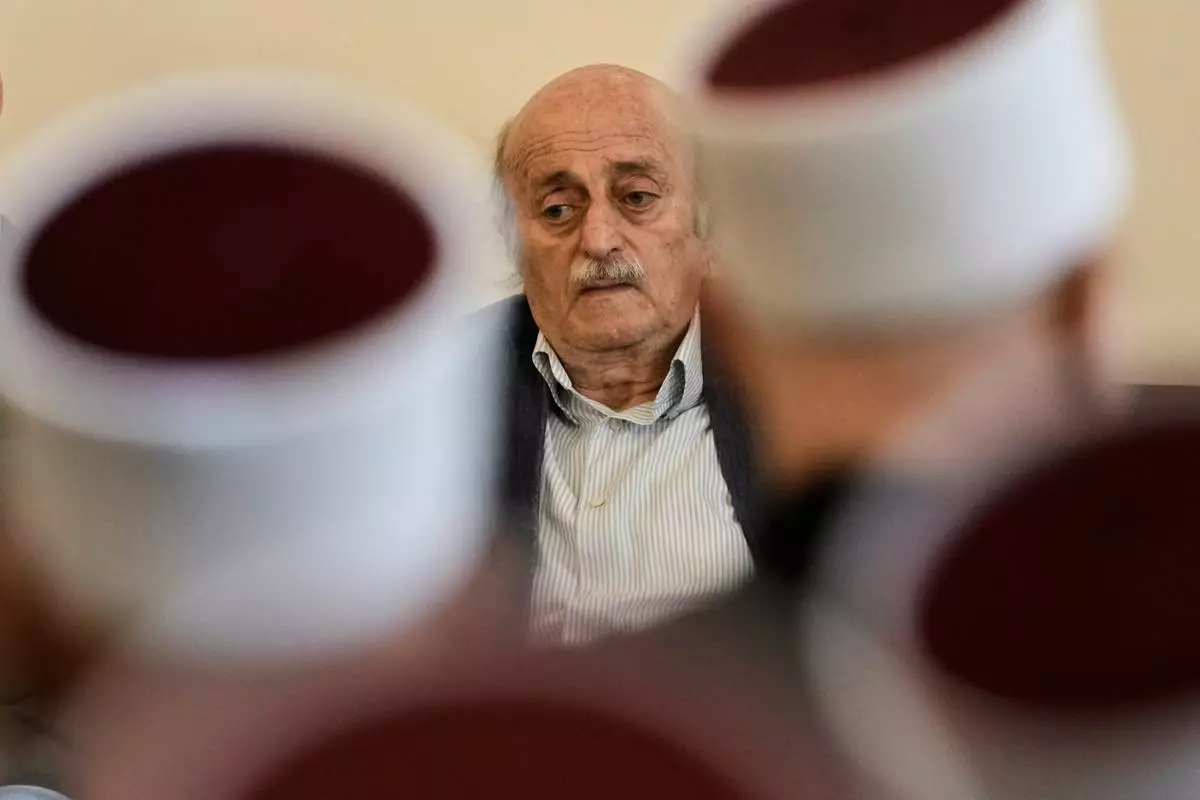 Walid Jumblatt, the political leader of Lebanon's minority Druze sect, attends a gathering of minority religious leaders in Beirut, Lebanon, Friday, July 18, 2025 as they speak about sectarian clashes between Druze factions, Sunni Muslim Bedouin clans, and government forces in Syria. (AP Photo/Bilal Hussein)