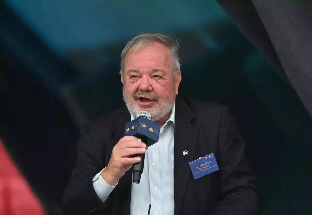Club Steward Nicholas Hunsworth delivers a speech at the completion ceremony of the Hong Kong Maritime Museum Jockey Club Anchor Plaza.