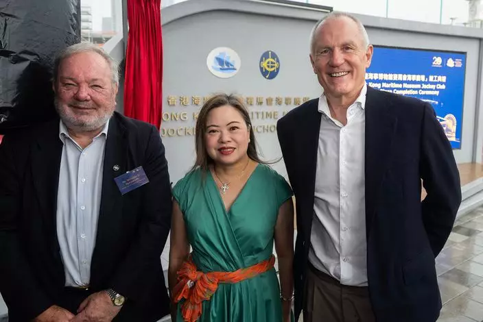 Attending the Hong Kong Maritime Museum Jockey Club Anchor Plaza completion ceremony were HKSAR Government Secretary for Culture, Sports and Tourism Rosanna Law (centre), Club Steward Nicholas Hunsworth (left) and Hong Kong Maritime Museum Chairman Richard Hext (right).