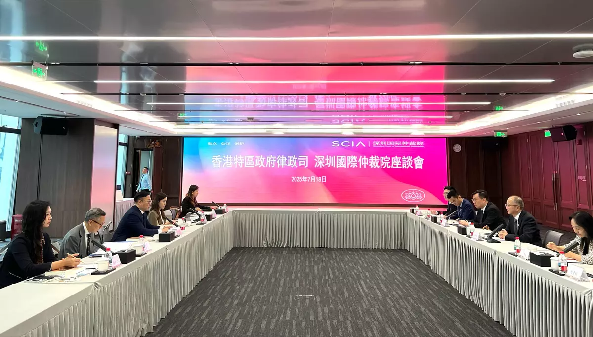 The Deputy Secretary for Justice, Dr Cheung Kwok-kwan, met with the President of the Shenzhen Court of International Arbitration, Dr Liu Xiaochun, in Shenzhen today (July 18) to discuss developments and collaboration in the field of sports dispute resolution between Hong Kong and Shenzhen.