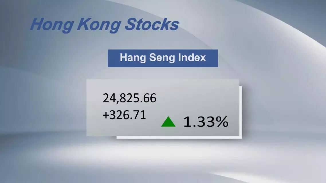 Hong Kong's stock market ended higher Friday with the benchmark Hang Seng Index up 1.33 percent to close at 24,825.66 points.