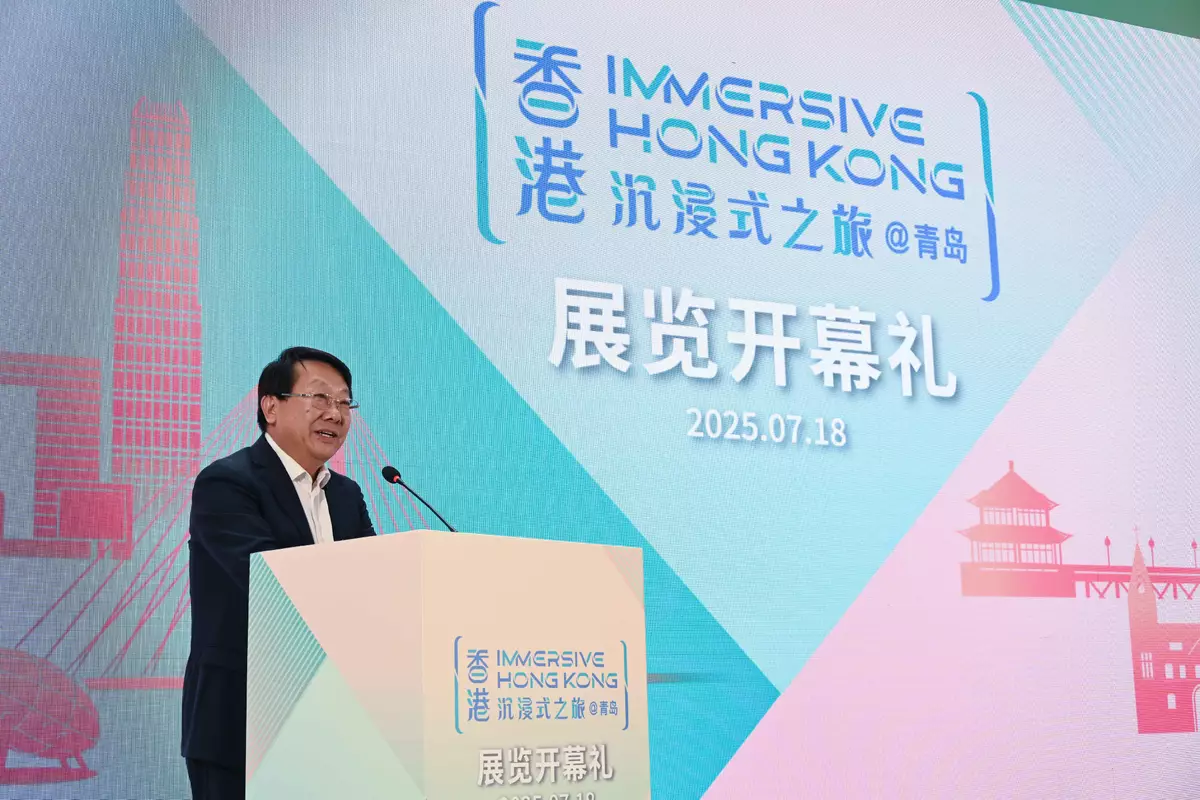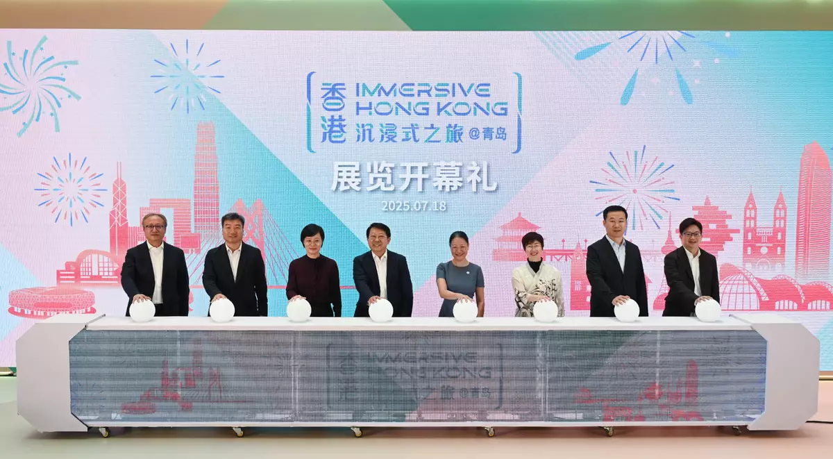 Co-organised by the Shandong Liaison Unit of the HKSAR Government, the exhibition, themed "Hong Kong - Where the World Looks Ahead", invites visitors from Qingdao and the entire Shandong Province to explore the unique opportunities and potential for tourism, education, business and investment in Hong Kong.