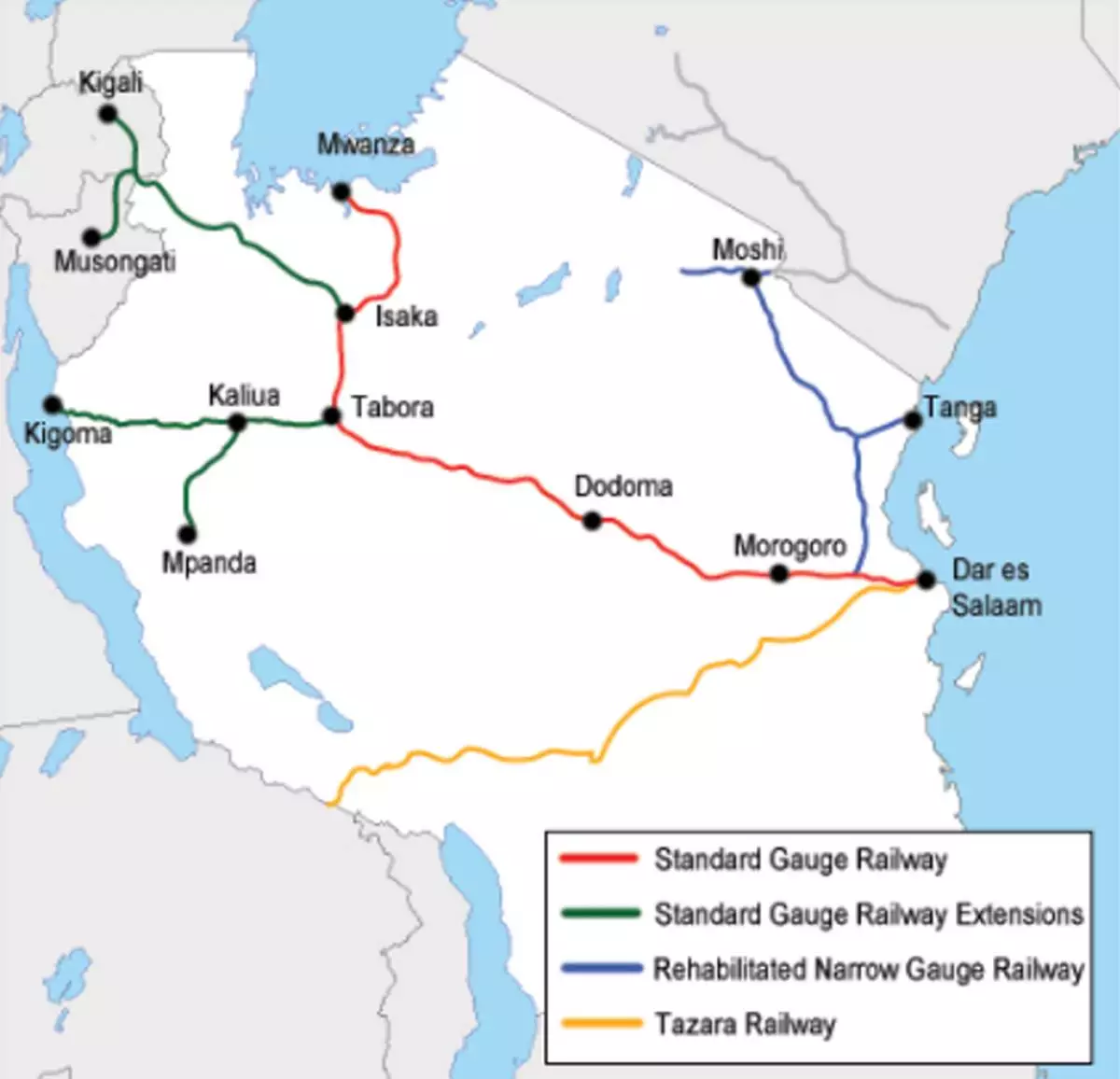 Figure 12: Key routes of Tanzania’s Standard Gauge Railway project.