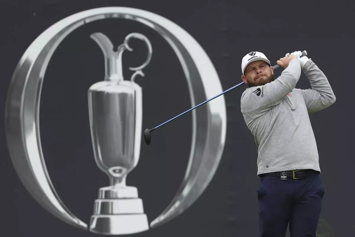 Tyrrell Hatton of England plays his tee shot on the 1st during the second round of the British Open golf championship at the Royal Portrush Golf Club, Northern Ireland, Friday, July 18, 2025. (AP Photo/Peter Morrison)