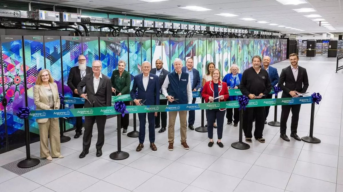 Secretary of Energy Chris Wright and leaders from Argonne, Intel and HPE cut the ribbon to celebrate the Aurora exascale supercomputer. (Image by Argonne National Laboratory).