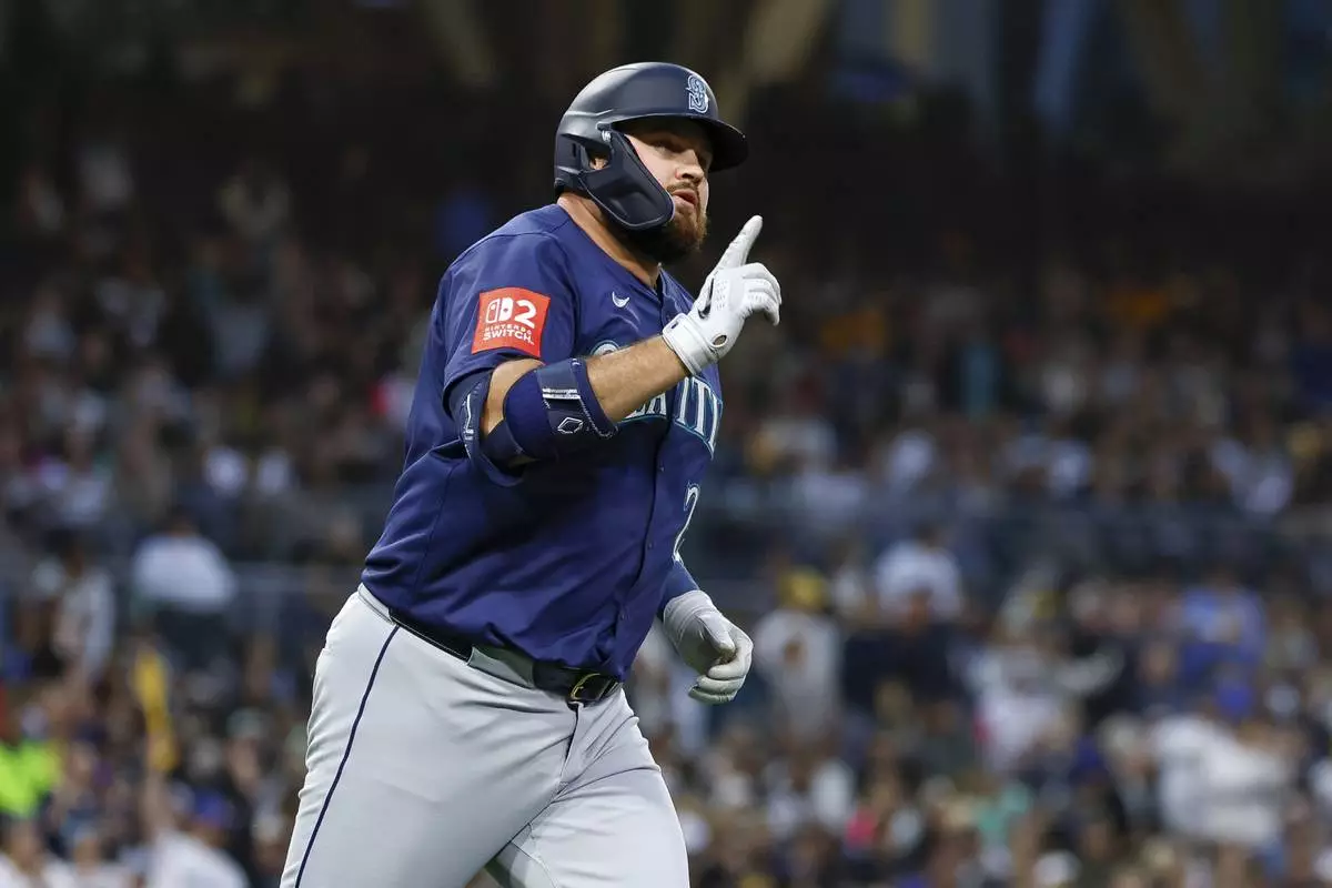 FILE - Seattle Mariners' Rowdy Tellez runs the bases after hitting a two-run home run during the fourth inning of a baseball game against the San Diego Padres, Friday, May 16, 2025, in San Diego. (AP Photo/Brandon Sloter, File)