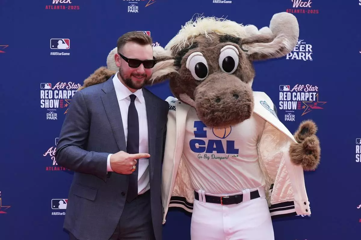 Seattle Mariners' Cal Raleigh arrives on the red carpet for the MLB baseball All-Star game, Tuesday, July 15, 2025, in Atlanta. (AP Photo/Mike Stewart)