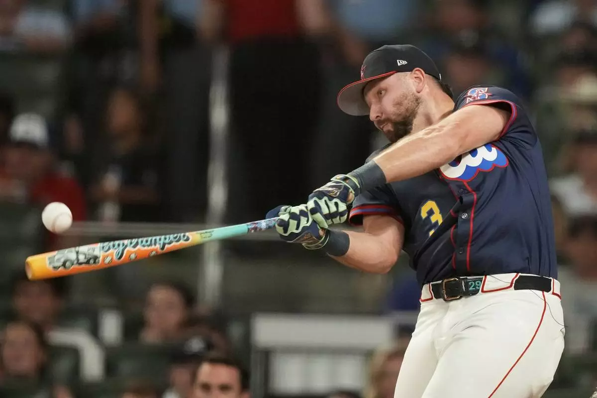 Seattle Mariners' Cal Raleigh competes during the MLB baseball All-Star Home Run Derby, Monday, July 14, 2025, in Atlanta. (AP Photo/Brynn Anderson)
