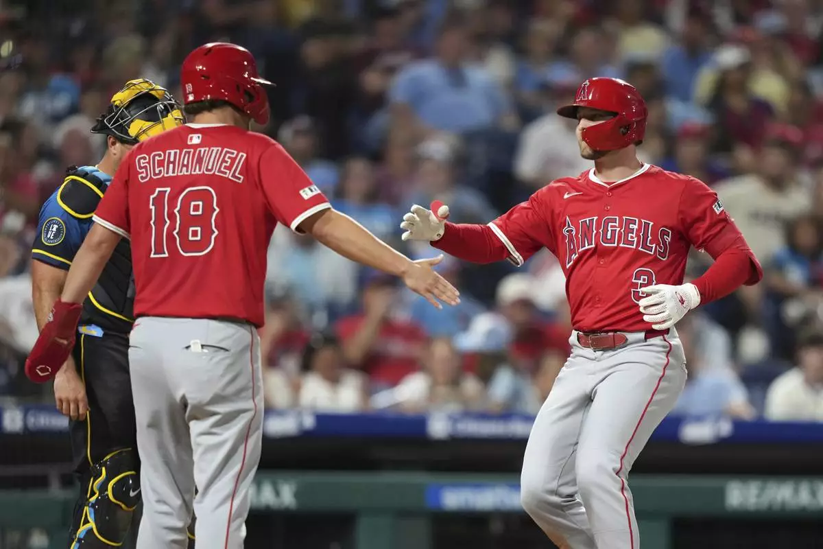 PHILADELPHIA (AP) — Taylor Ward hit a go-ahead two-run homer, Jo Adell and Jorge Soler also went deep, and the Los Angeles Angels beat the Philadelphia Phillies 6-5 on Friday night.