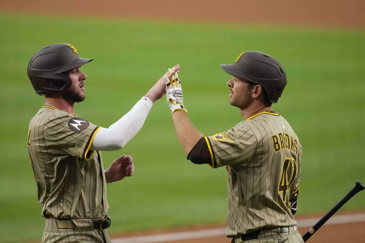 In the San Diego sixth, Bogaerts led off with a bloop double, went to third on a bunt single by Cronenworth and scored on a squeeze bunt by Díaz to make it 2-0.