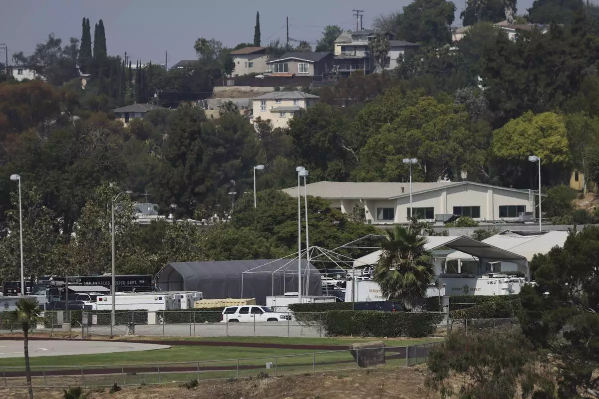 The Biscailuz Training Facility, where an explosion occurred, is shown on Friday, July 18, 2025, in Los Angeles. (AP Photo/Etienne Laurent)