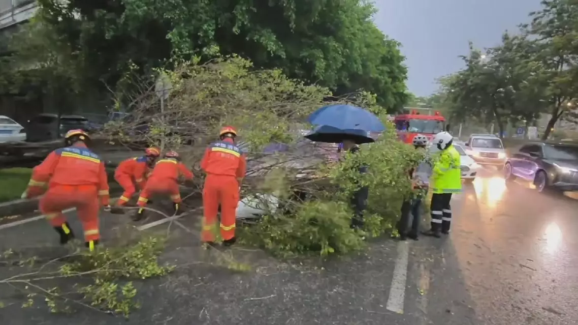 Woman rescued after getting injured by wind-toppled tree in Guangdong