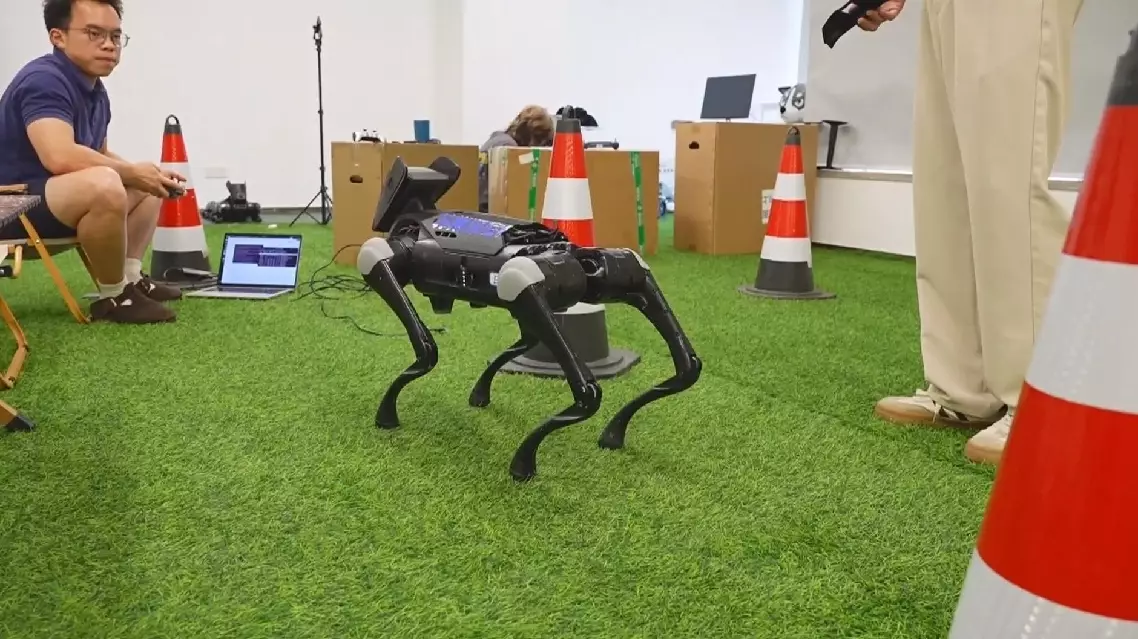 For example, after the user kicks away a football, the dog is expected to chase the moving ball and push it back in an agile manner.