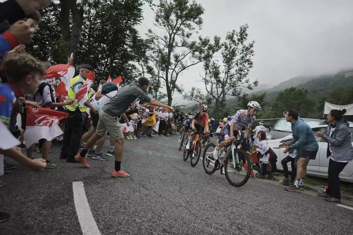 TV footage of the race showed the team car knocking down the fan who was holding what looked liked a mobile phone about 200 meters from the top of the Col de Peyresourde. The vehicle was following riders on the steep ascent and driving at moderate speed.