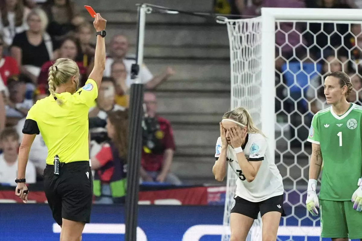 BASEL, Switzerland (AP) — A player was sent off at the Women’s European Championship for pulling an opponent’s hair, six days after a similar incident during the Club World Cup final.