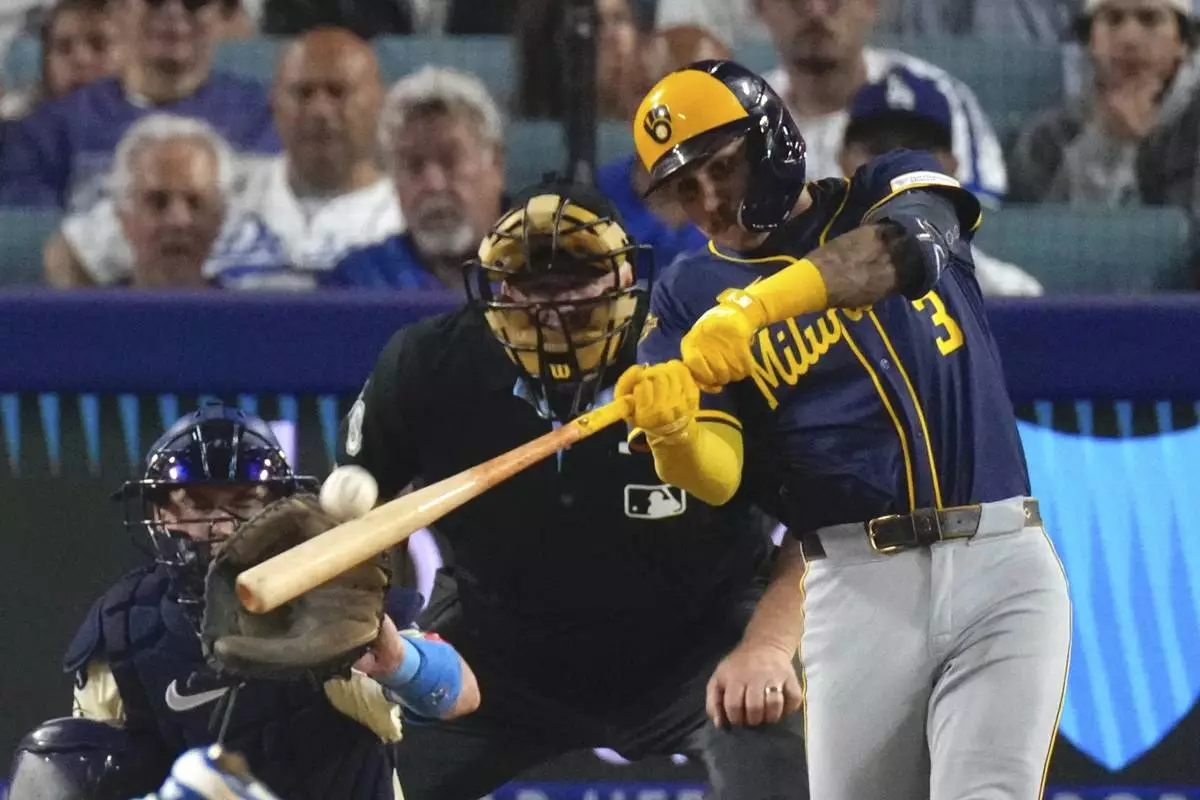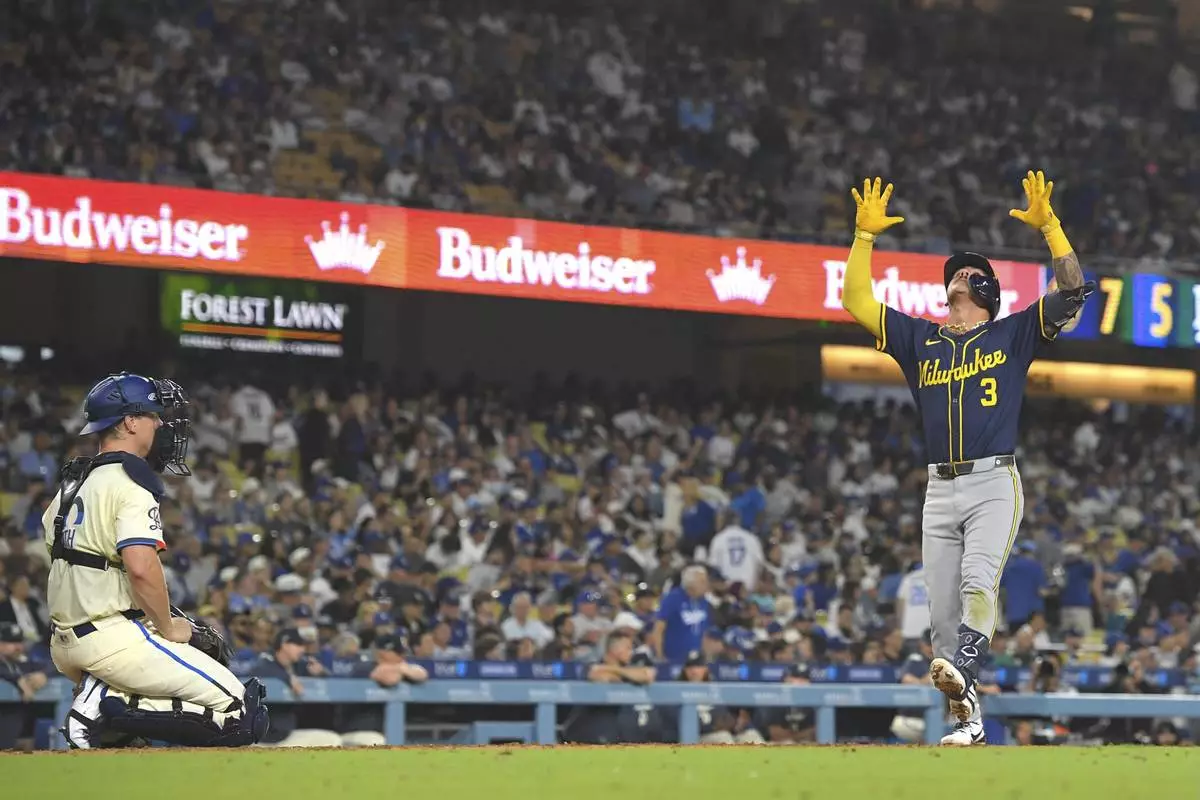 LOS ANGELES (AP) — Freddy Peralta won his seventh straight start, Isaac Collins and Joey Ortiz homered, and the Milwaukee Brewers held off the Los Angeles Dodgers 8-7 on Saturday night to extend their win streak to a season-best nine.