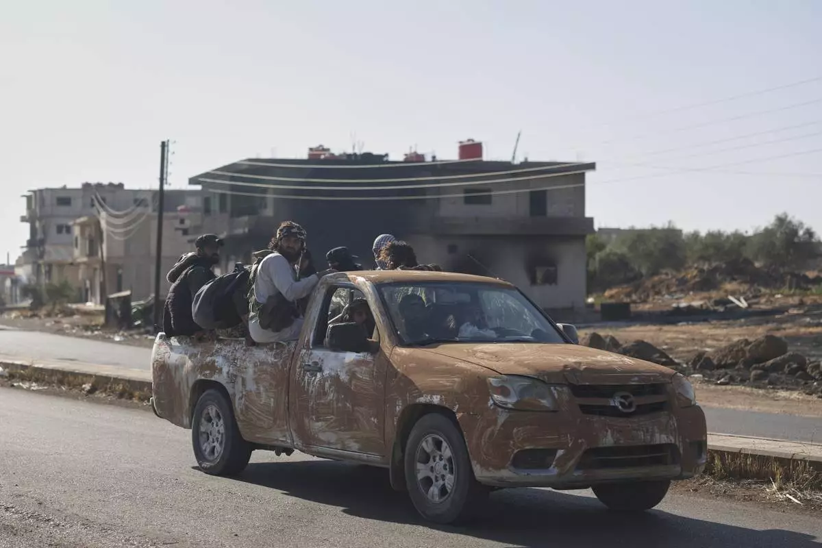 Bedouin fighters ride in a truck in Mazraa village on the outskirts of Sweida city, in southern Syria, Saturday, July 19, 2025. (AP Photo/Ghaith Alsayed)
