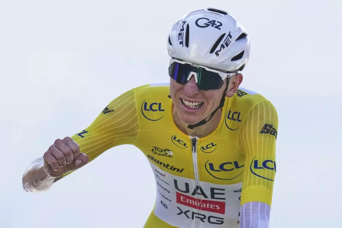 Slovenia's Tadej Pogacar, wearing the overall leader's yellow jersey, wins the thirteenth stage of the Tour de France cycling race, an individual time-trial over 10.5 kilometers (6.5 miles) in the Pyrenees mountains with start in Loudenvielle and finish in Peyragudes, France, Friday, July 18, 2025. (AP Photo/Thibault Camus)