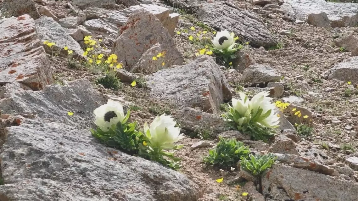 The Karlik Glacier is the easternmost end of the Tianshan Mountains, with a peak elevation of 4,888 meters. Its rocky cliffs and outcrops provide the ideal growing conditions for wild snow lotus.