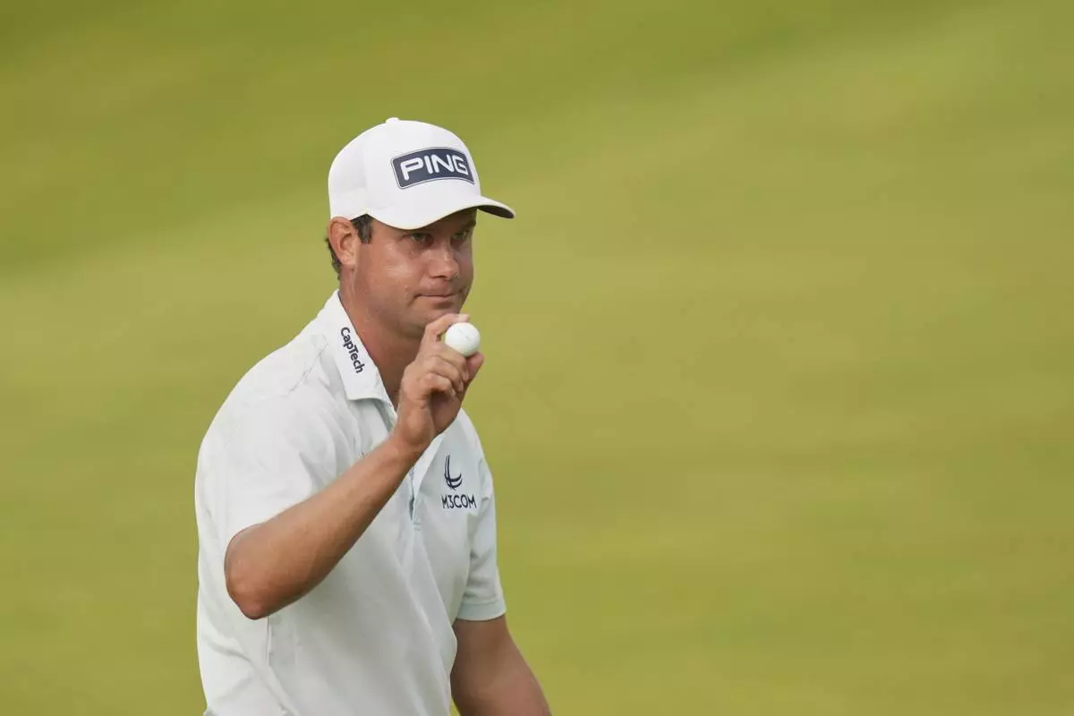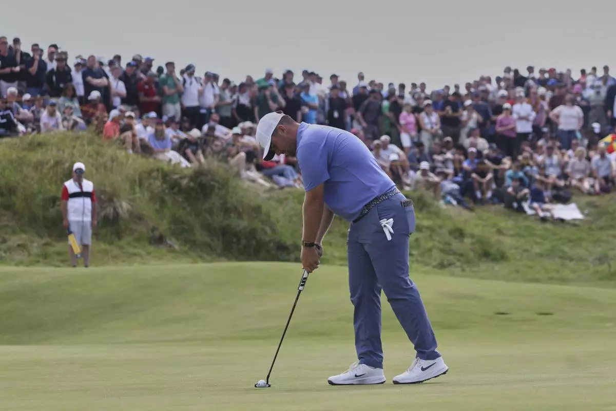 Harris English of the United States acknowledges the crowd on the 18th green during the final round of the British Open golf championship at the Royal Portrush Golf Club, Northern Ireland, Sunday, July 20, 2025. (AP Photo/Francisco Seco)