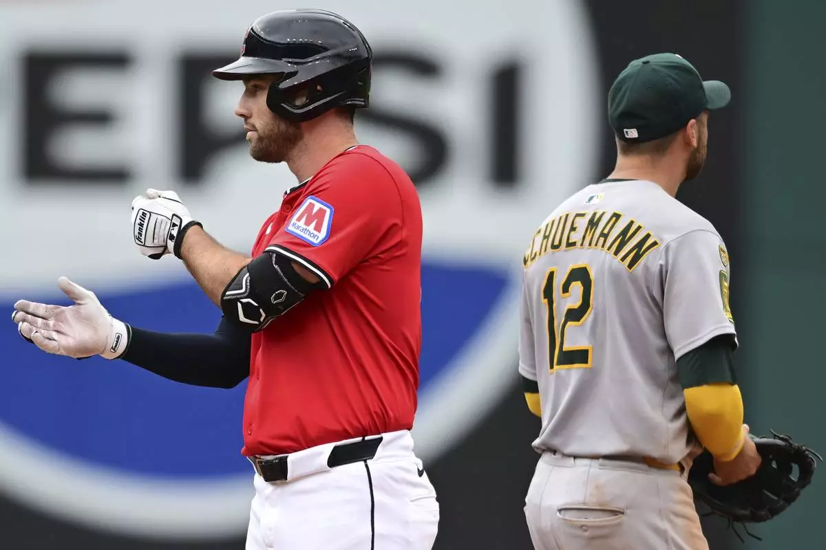 Nick Kurtz had a pair of doubles for the Athletics, who have lost nine of their last 10 in Cleveland.