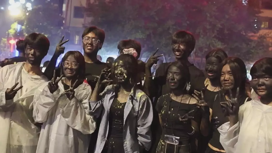 Even after the torches burn out, the excitement continues -- the leftover charcoal becomes a key prop for the next round of festivities. Smearing the ash on others' faces represents blessings, with more smearing signifying greater fortune and prosperity.