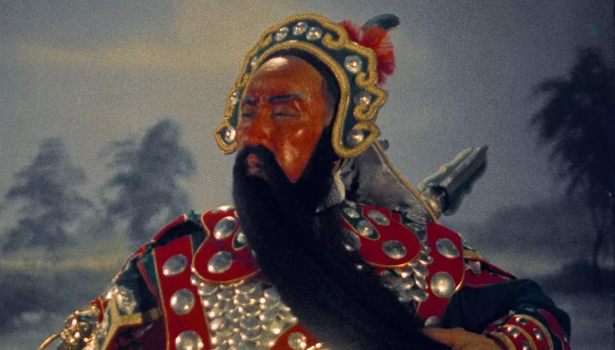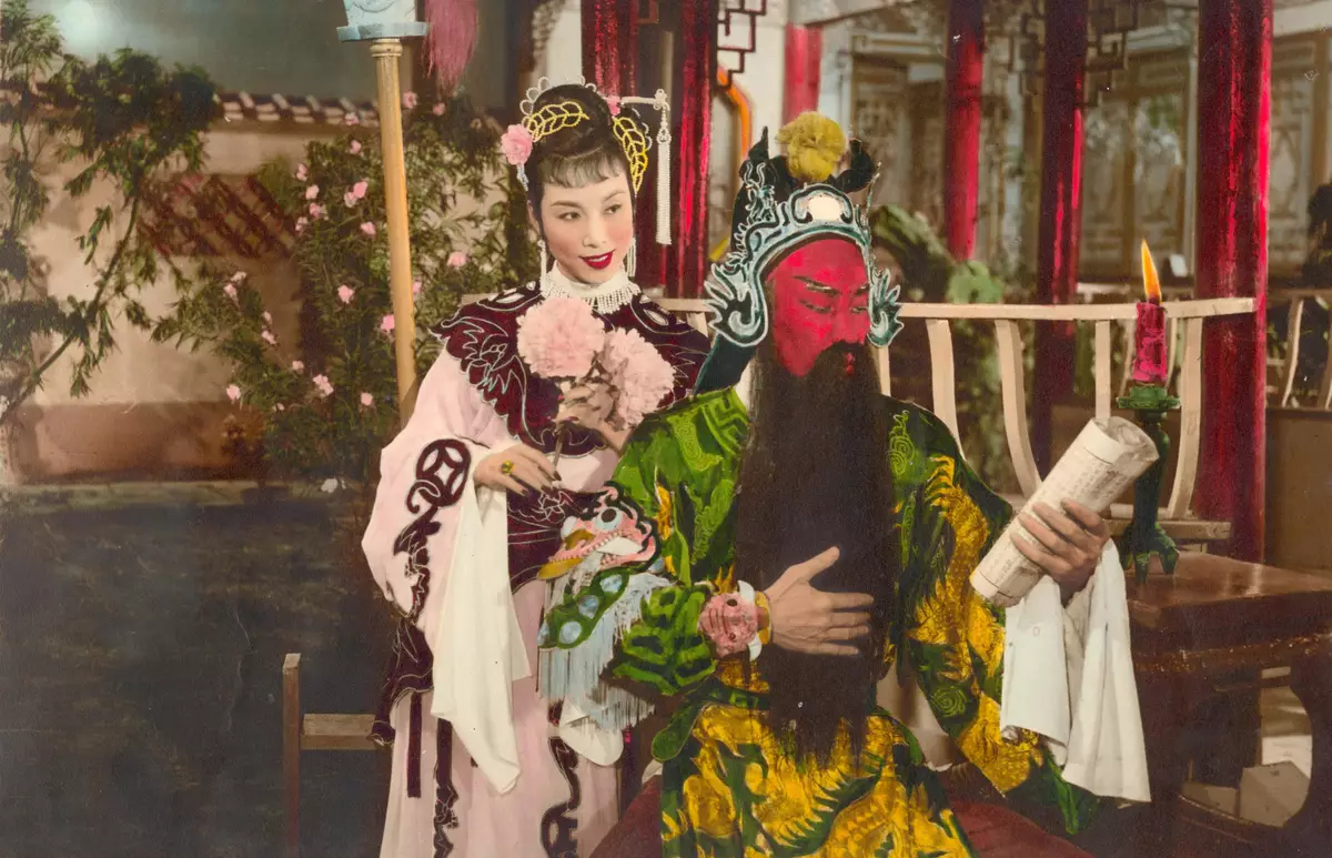 The "General Kwan Guards the Huarong Path Lau Bei Crosses the River to Meet His Bride" (1957) tells the story of Sun Quan pretending to offer his sister's hand in marriage to Liu Bei, played by Cheung Wood-yau, in an ultimately failed attempt to take back Jingzhou from Liu. Leng Wah Hang, a highly acclaimed wusheng actress of Cantonese opera, gives a definitive performance as Lord Guan in the film, especially in the scenes where she wields the Green Dragon Crescent Blade masterfully in a perfect display of techniques. The film will be screened with "Drowning Seven Armies" from "An Ideal Couple" (1960) (2K Digitised Version), starring another Cantonese opera virtuoso Sun Chu, who was also lauded as "Living Lord Guan", in the role of Guan Yu. Following the Peking opera tradition, Sun Chu portrayed Lord Guan with a red face. The image of Lord Guan with a red face was so well received that it has since become the hallmark of the role in Cantonese opera.