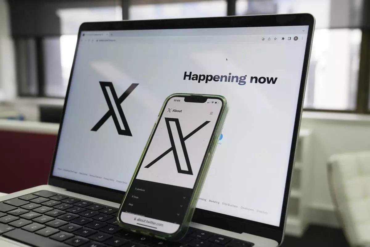 FILE - The opening page of X is displayed on a computer and phone, Oct. 16, 2023, in Sydney. (AP Photo/Rick Rycroft, File)
