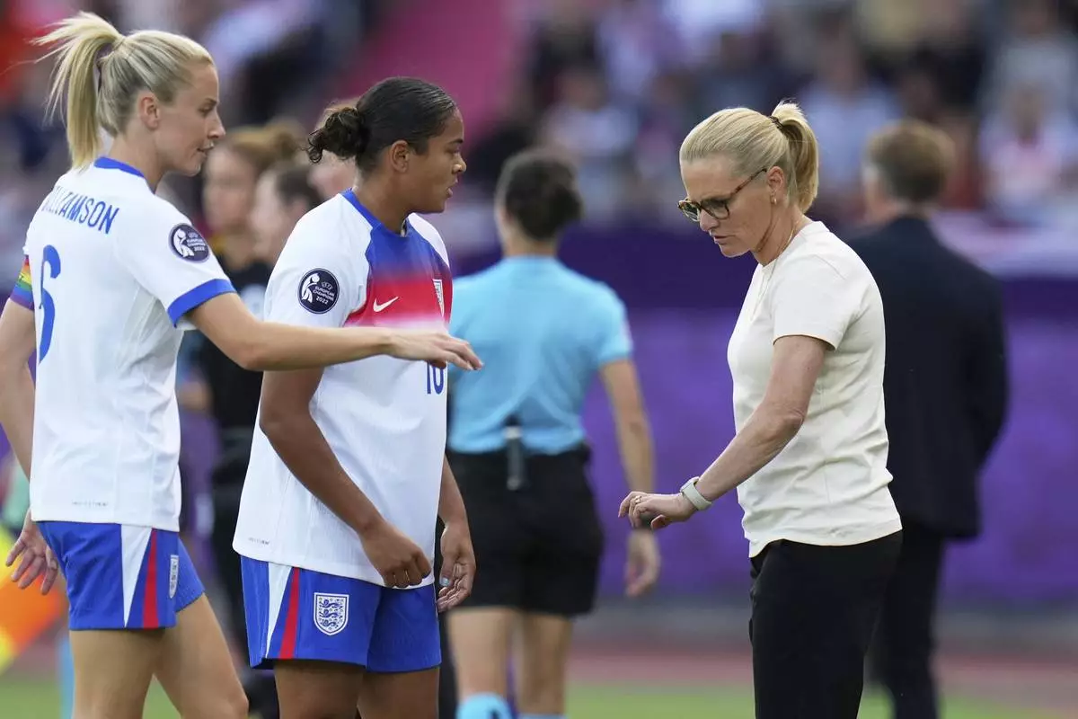 GENEVA (AP) — England defender Jess Carter is ready to play in the Women’s European Championship semifinals after being targeted with racist abuse online, her coach Sarina Wiegman said Monday, adding that it's “sad” and “disgusting” that the team has to deal with such an issue.