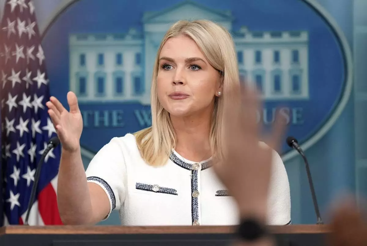 White House press secretary Karoline Leavitt speaks with reporters in the James Brady Press Briefing Room at the White House, Thursday, July 17, 2025, in Washington. (AP Photo/Alex Brandon)