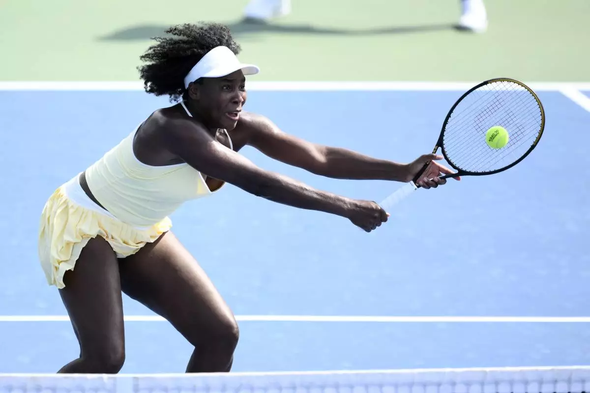WASHINGTON (AP) — Competing at a tournament for the first time in more than a year, and in doubles for the first time in nearly three, Venus Williams hit a big serve on her initial delivery at the DC Open on Monday and, curiously, it was wiped out by a foot-fault call.