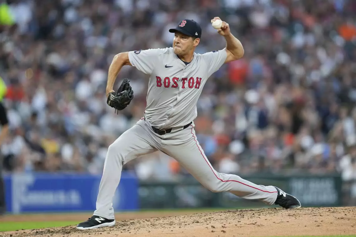 FILE - Boston Red Sox pitcher Rich Hill throws against the Detroit Tigers in the seventh inning of a baseball game, Aug. 31, 2024, in Detroit. (AP Photo/Paul Sancya, File)