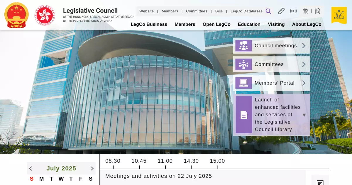 The Legislative Council (LegCo) will hold a meeting tomorrow (July 23) at 11am in the Chamber of the LegCo Complex. During the meeting, the Second Reading debate on the Legislative Council (Powers and Privileges) (Amendment) Bill 2025 will resume. If the Bill is supported by Members and receives its Second Reading, it will stand committed to the committee of the whole Council. After the committee of the whole Council has completed consideration of the Bill and its report is adopted by the Council, the Bill will be set down for the Third Reading.