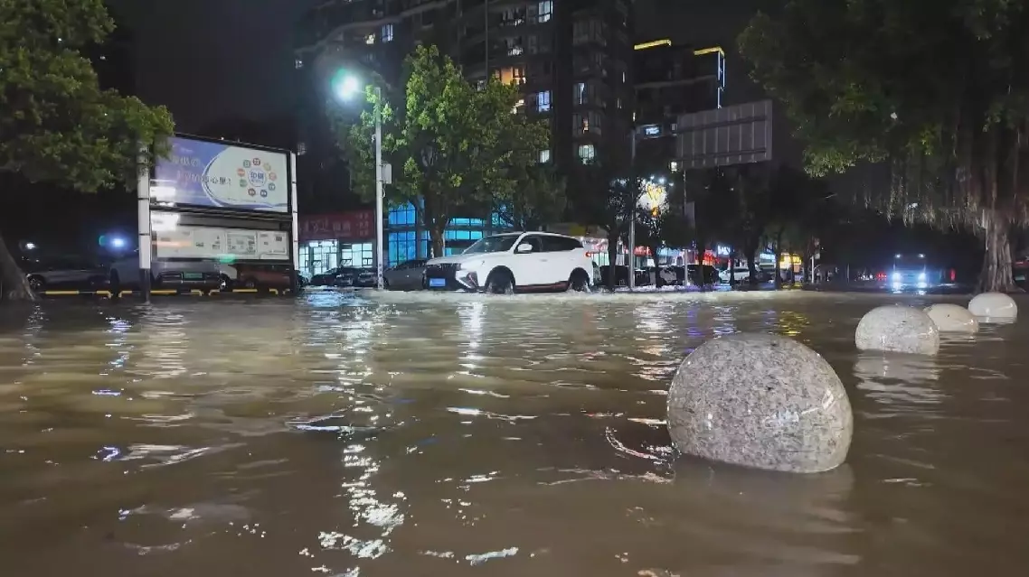 "The rising water level of rivers caused the reverse flow from the sewer wells. Fortunately, we had dispatched two drainage vehicles here in advance. We have been draining water here for three hours. Now the water level is relatively stable here," said Yang Weiping, an engineer draining flood water from a flooded road in Qiaocheng District of the city.