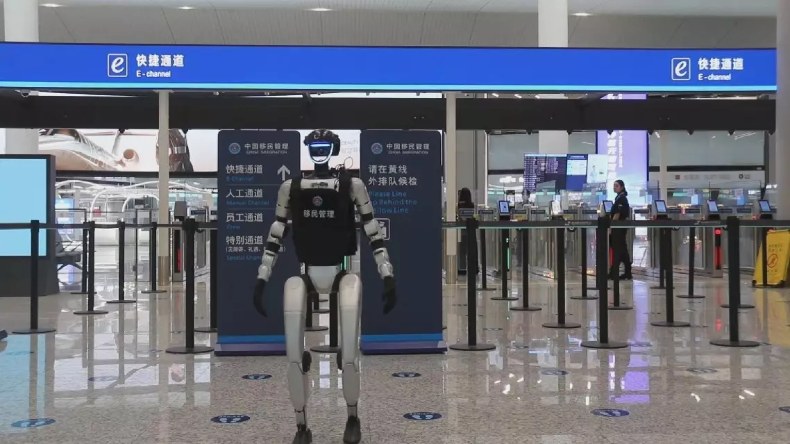 At the border inspection area of Hangzhou Xiaoshan International Airport, humanoid robots have been deployed to handle routine inquiries, such as policy consultations.