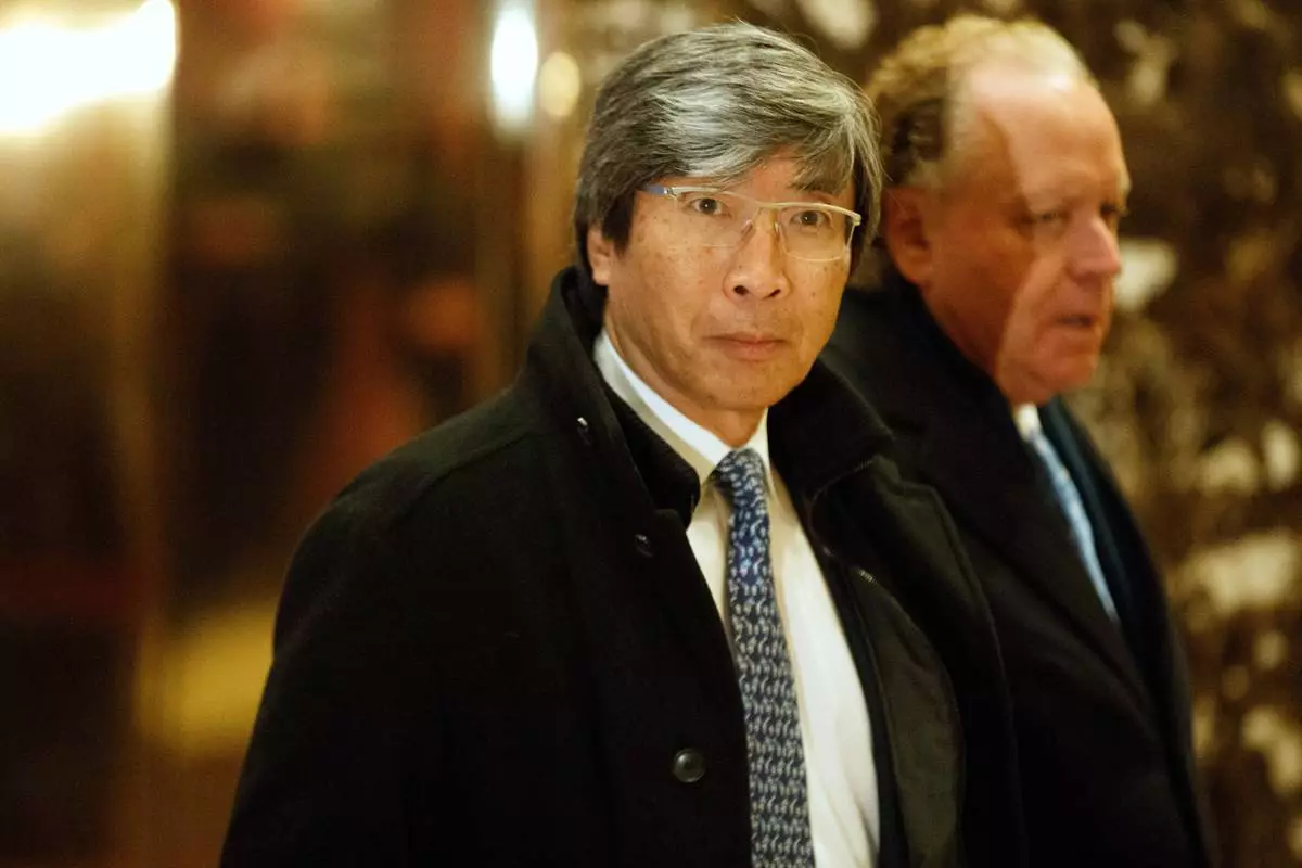 FILE - Dr. Patrick Soon-Shiong arrives in the lobby of Trump Tower in New York, Jan. 10, 2017. (AP Photo/Evan Vucci, file)