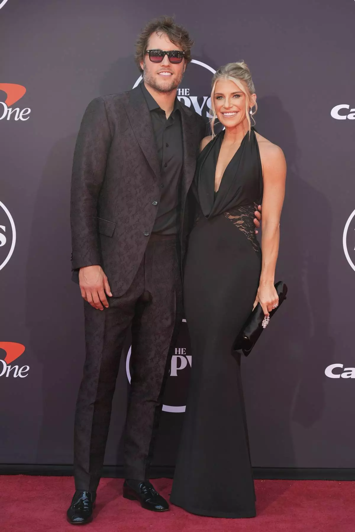 Matthew Stafford, left, and his wife, Kelly, arrive at the ESPY Awards at the Dolby Theatre in Los Angeles, Wednesday, July 16, 2025. (AP Photo/Chris Pizzello)